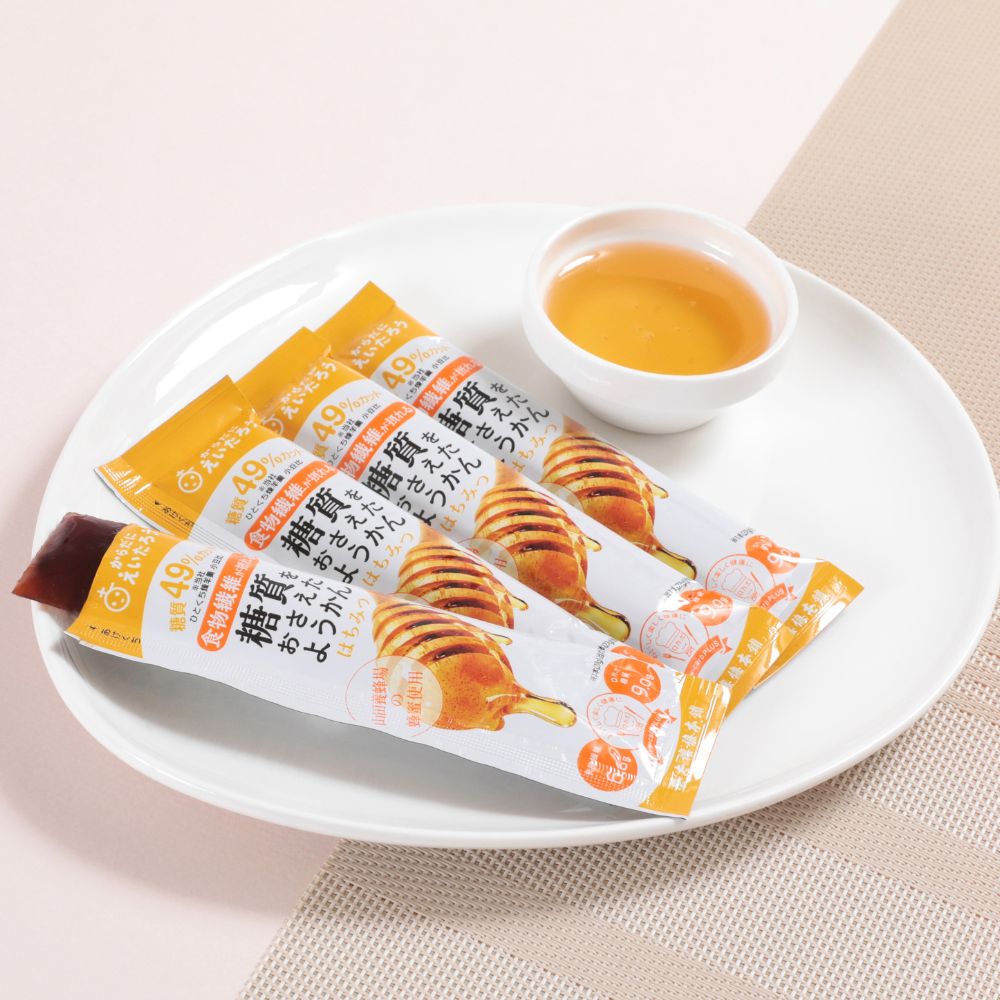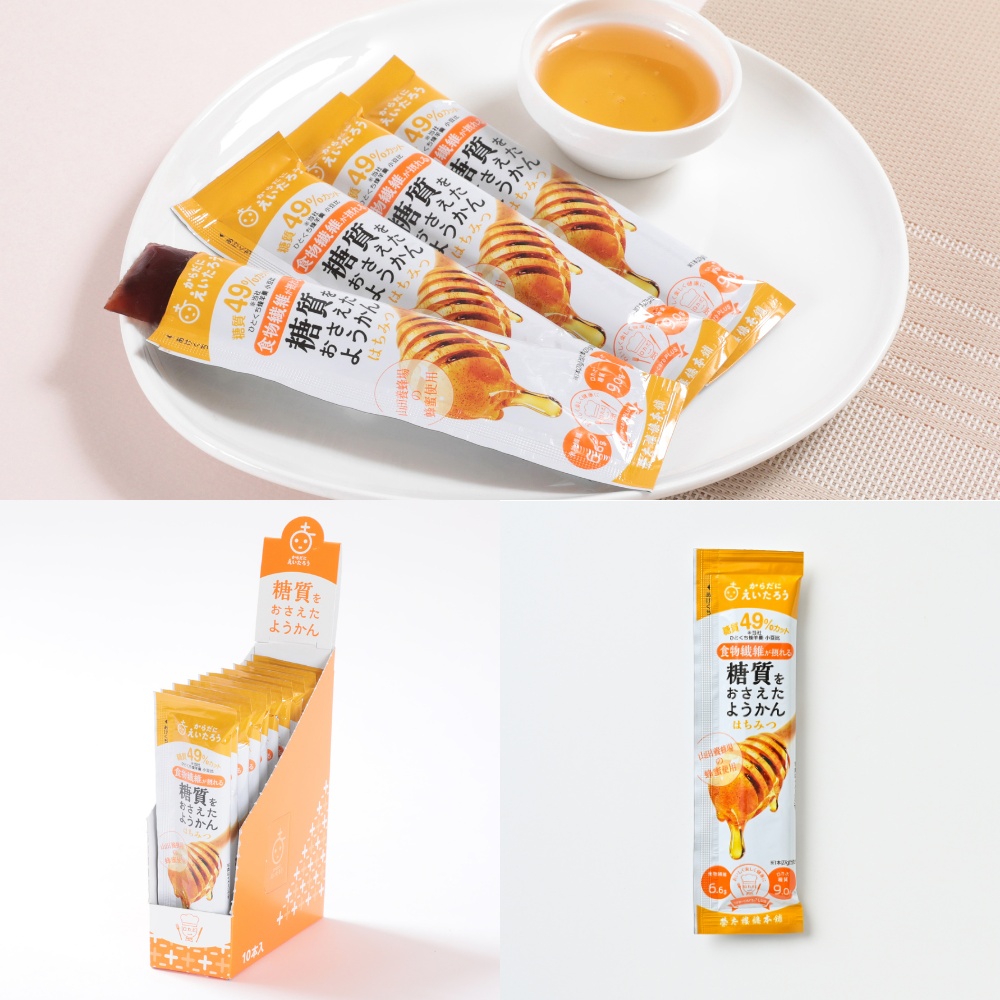 羊羹の甘味はしっかり残しつつ、従来の羊羹の約半分※の糖質に抑え、体にやさしく小豆の風味と美味しさが感じられる「ようかん」に仕立てました。