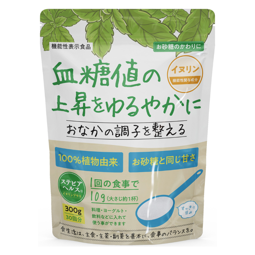 天然甘味料ステビアと食物繊維(イヌリン)を配合した100%植物由来の機能性表示食品の甘味料で、