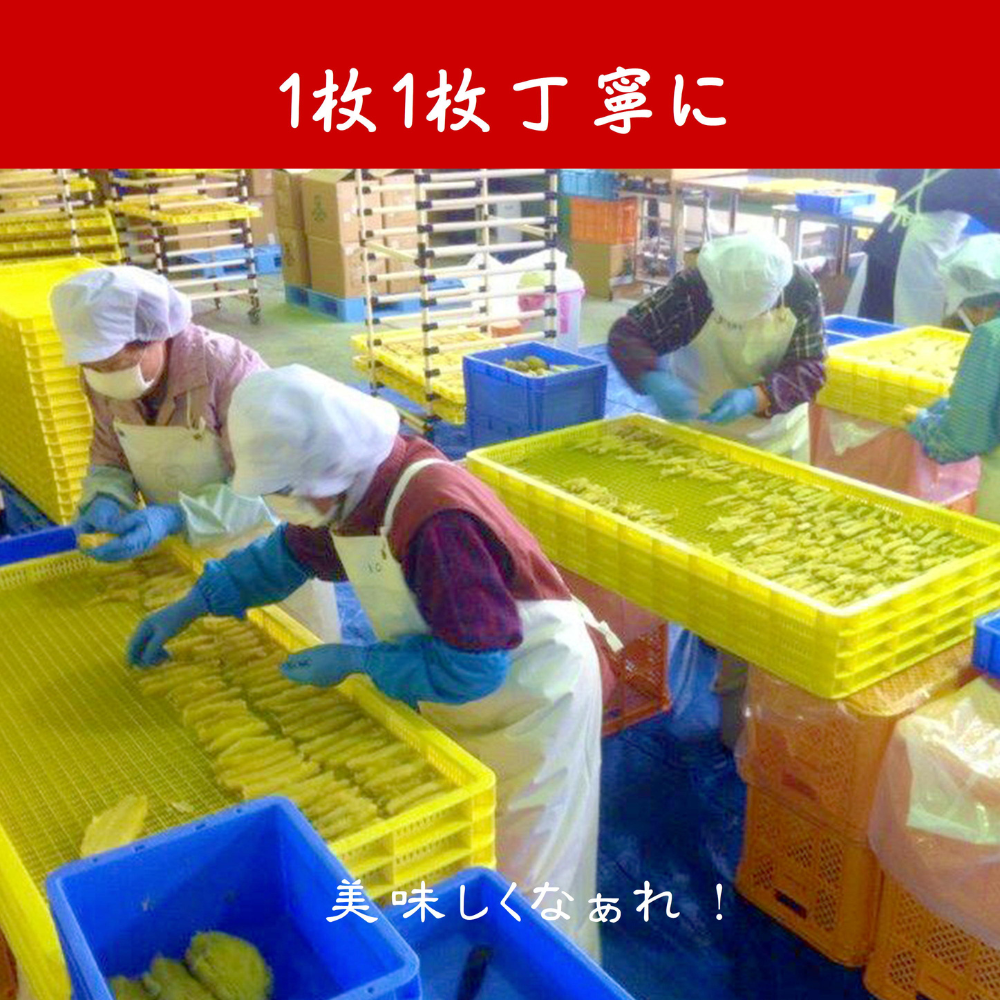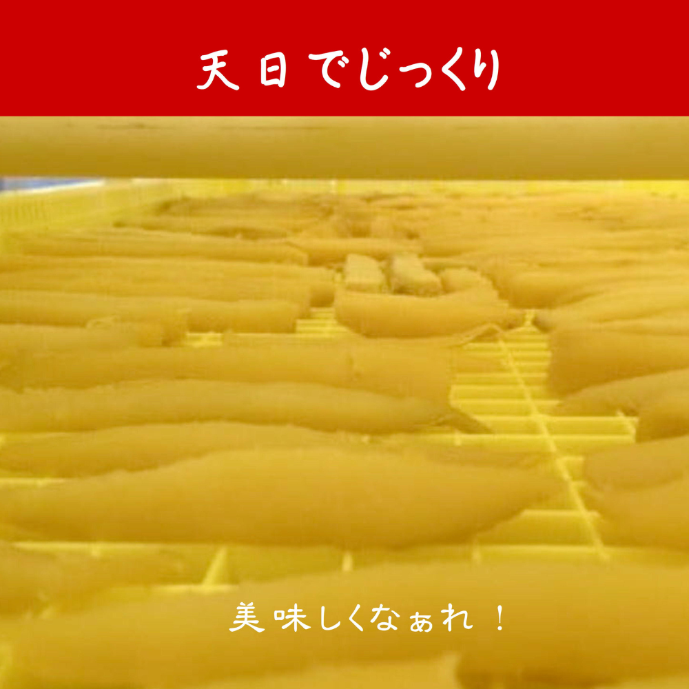 ・この天日干しにおいては静岡県遠州地方特有の北風「遠州のからっ風」の恵みを受け、甘くて柔らかい干芋に仕上がります。
