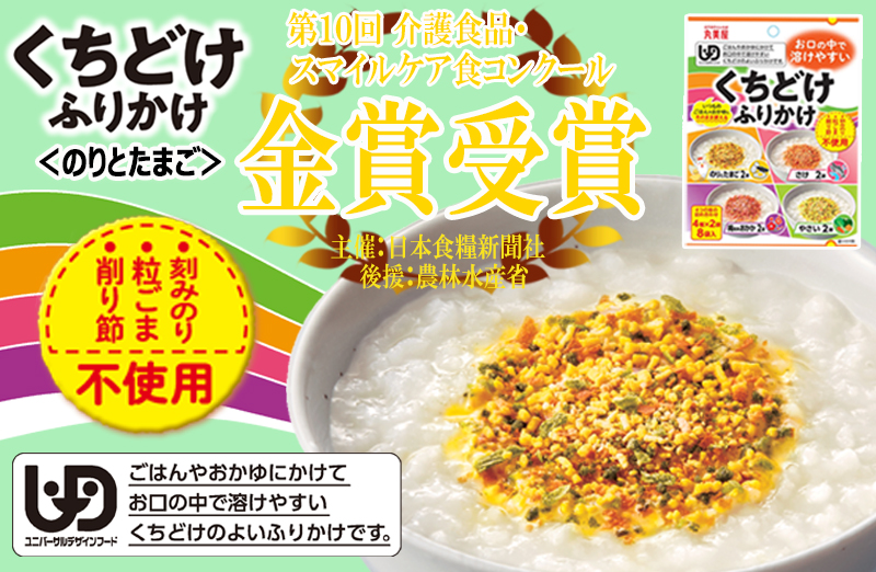 『くちどけふりかけ』”のりとたまご”は第10回介護食品・スマイルケア食コンクール金賞を受賞。