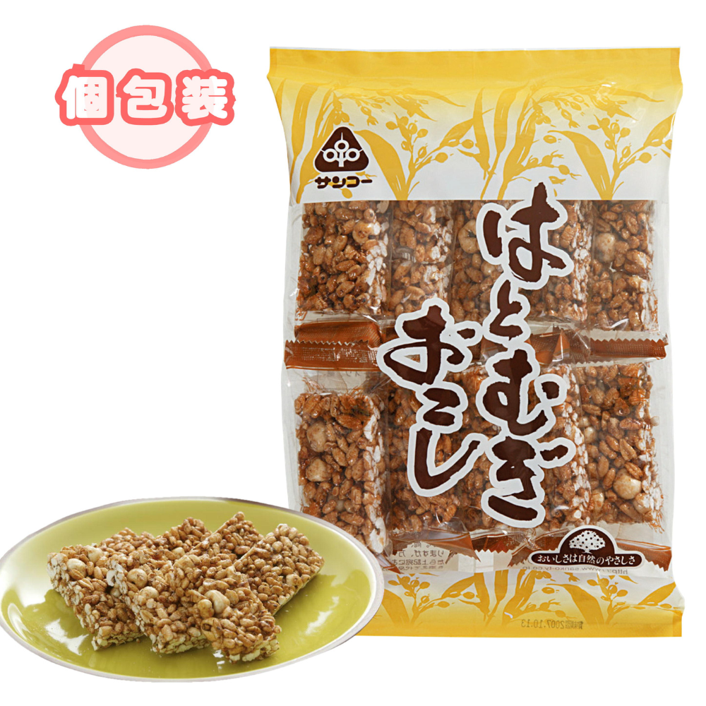 はとむぎの香ばしい風味が特徴です。ひとつずつ個包装されていますので、お子様のおやつや、お仲間で分けてお召し上がりください。【玄米おこし】