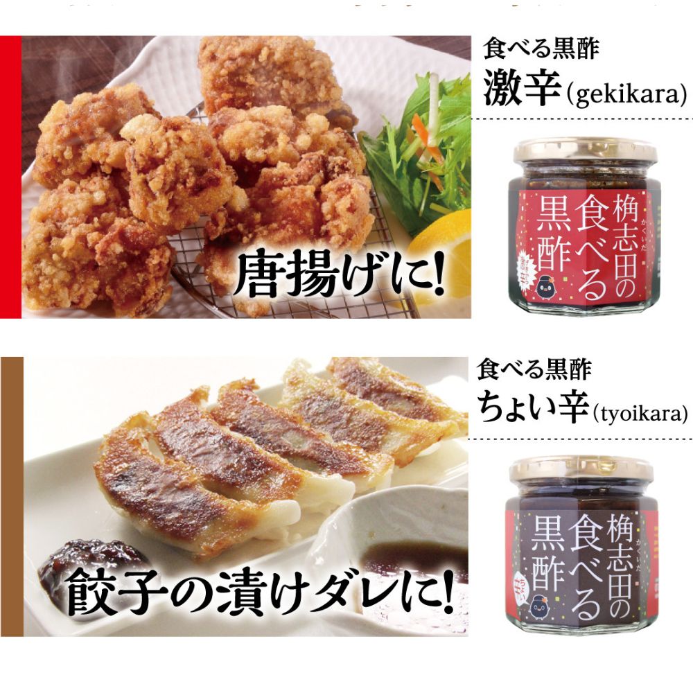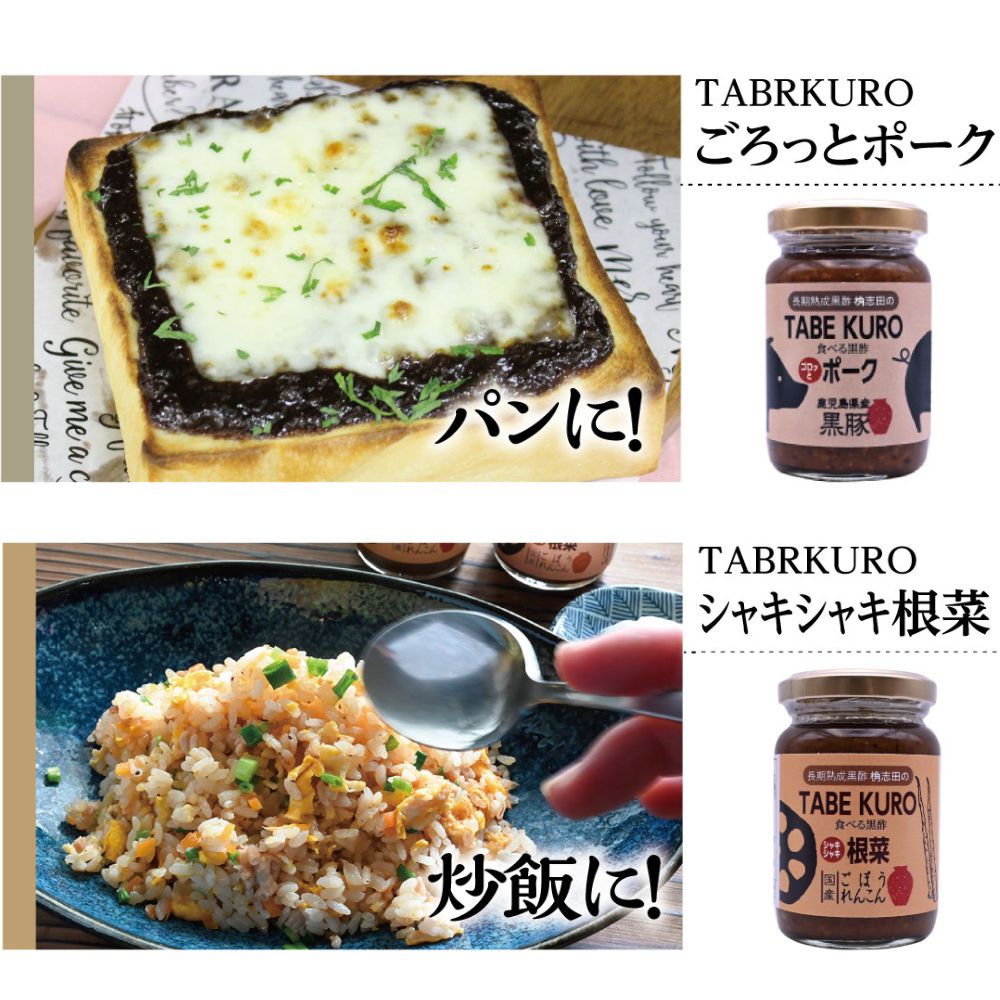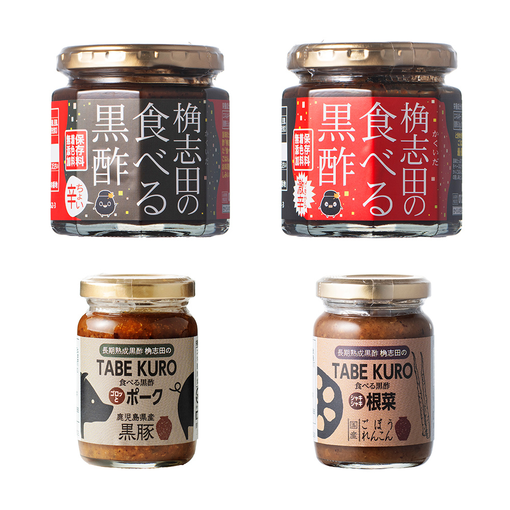 | 成分・素材 | 食べる黒酢 ちょい辛米黒酢(国内製造)、玉ねぎ、料理酒、醤油、砂糖、米麹、豆鼓、粗糖、生姜、ニンニク、タカの爪<アレルギー表示(製造ライン含む)>小麦、大豆、豚肉 食べる黒酢 激辛米黒酢(国内製造)、玉ねぎ、料理酒、醤油、砂糖、米麹、豆鼓、粗糖、生姜、ニンニク、タカの爪、山椒<アレルギー表示(製造ライン含む)>小麦、大豆、豚肉 TABEKURO ゴロッとポーク豚肉(鹿児島県産)、米黒酢、玉ねぎ、料理酒、醤油、砂糖、米麹、豆鼓、粗糖、生姜、ニンニク、タカの爪<アレルギー表示(製造ライン含む)>小麦、大豆、豚肉 TABEKURO シャキシャキ根菜蓮根(国産)、牛蒡(国産)、米黒酢、玉ねぎ、料理酒、醤油、砂糖、米麹、豆鼓、粗糖、生姜、ニンニク、タカの爪<アレルギー表示(製造ライン含む)>小麦、大豆、豚肉 |
