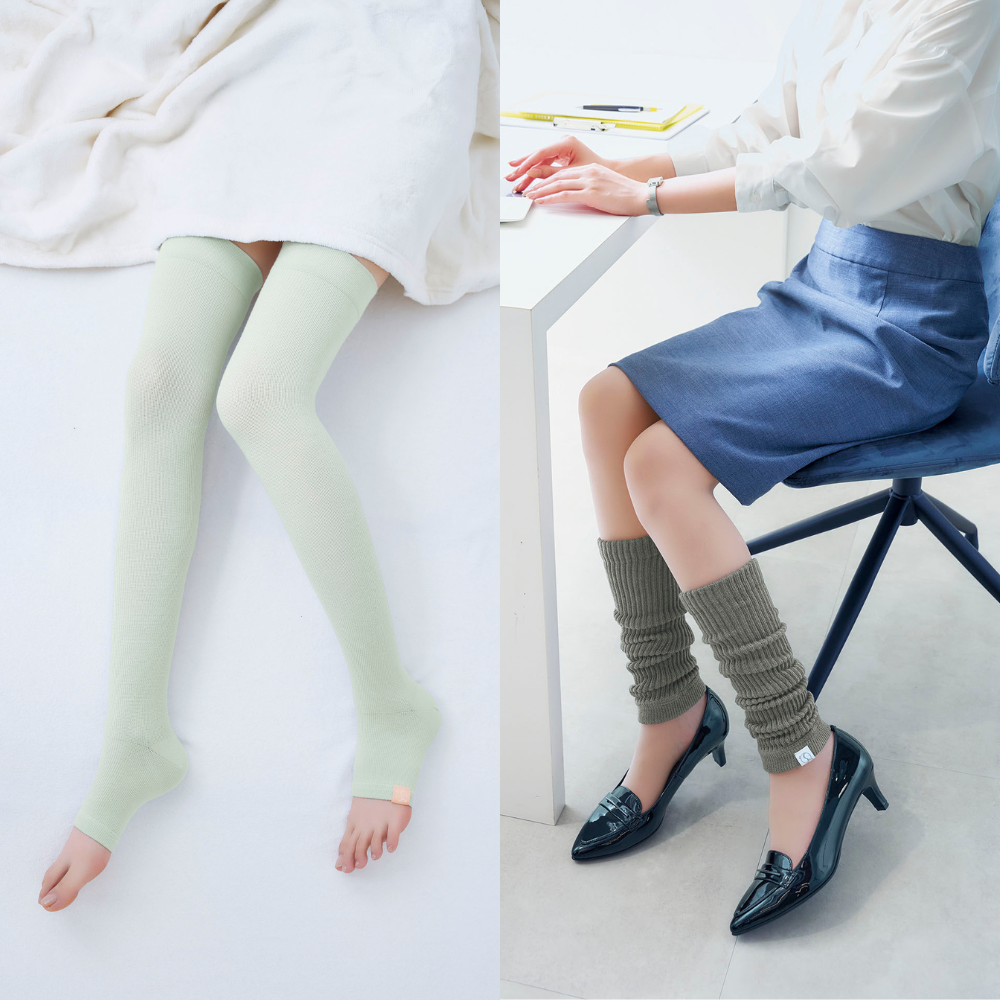| おすすめポイント | 履くだけで血行促進するなので冷え対策にも。 オーバーソックスは、着圧タイプ |