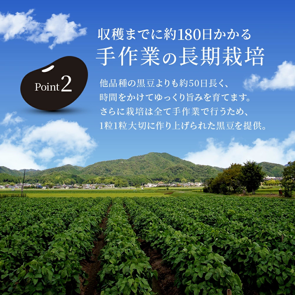 丹波篠山産黒大豆を深煎りし、風味や香ばしさを引き出すよう仕上げました。丹波黒豆の風味と香りがより楽しめる粗挽きタイプです。