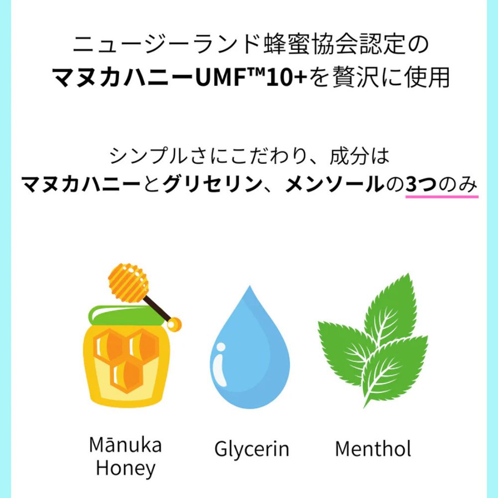 ニュージーランド蜂蜜協会認定のマヌカハニーUMF™10+を贅沢に使用。